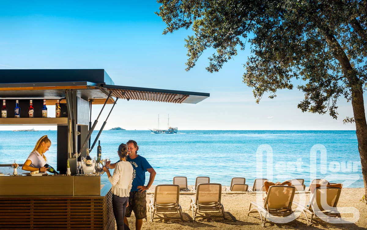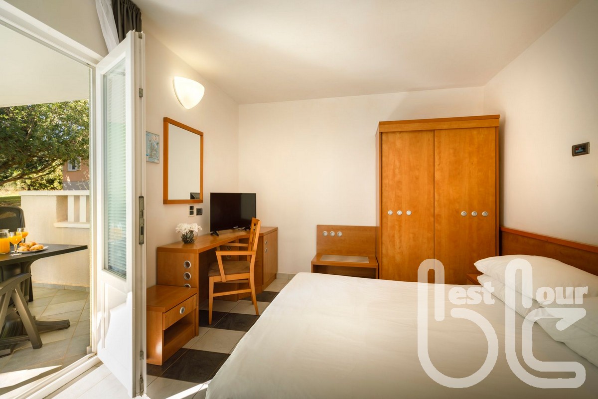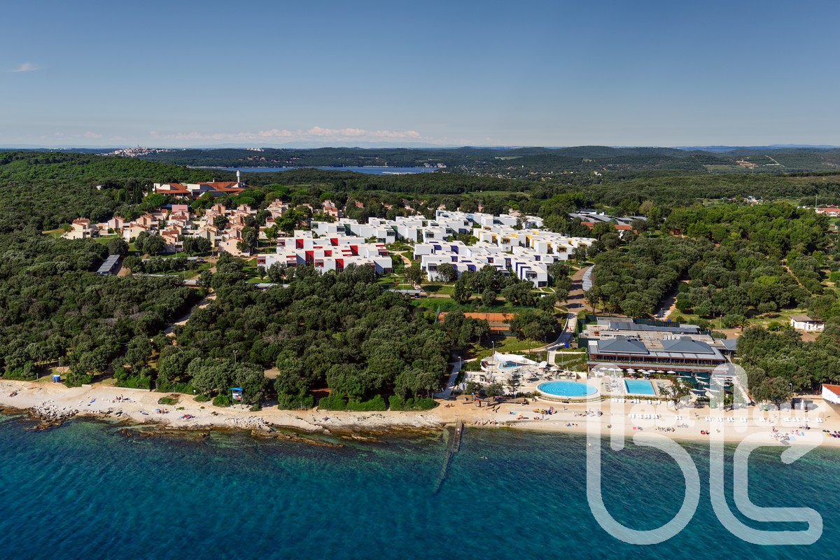v resortu 4* v zátoce Uvala Monsena. Resort leží v klidné poloze, obklopen středozemní zelení. V jeho blízkosti najdete spoustu zajímavých pěších turistických cílů s cestami podél pobřeží i do vnitrozemí. Historické centrum Rovinje je vzdáleno hodinu chůze podél moře. Resort charakterizuje oblázková/kamenitá pláž s pozvolným vstupem do moře, částečně betonová plata, typická pro pobřeží Istrie. Místní pláž se chlubí certifikací „Blue Flag" – modrá vlajka, která oceňuje čistotu moře. FKK pláž je vzdálena 20 min. chůze. Lehátka a slunečníky jsou pro klienty resortu zdarma. Pokoje typu studio jsou vybaveny koupelnou s fénem, TV-Sat, klimatizací, Wi-Fi a balkonem či terasou se zahradním nábytkem. Stravování formou polopenze – welcome drink, snídaně i večeře formou švédských stolů v restauraci či na terase resortu s výhledem na moře. K dispozici našim klientům jsou i 2 bazény s mořskou vodou přímo u pláže. Resort nabízí bohaté sportovní vyžití (za poplatek) – tenisové kurty, pronájem jízdních kol, kajaku, kanoe, plážový volejbal.