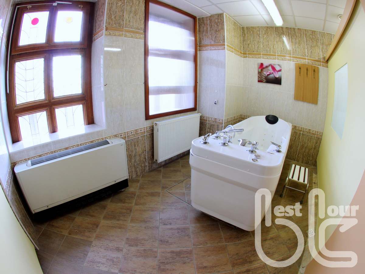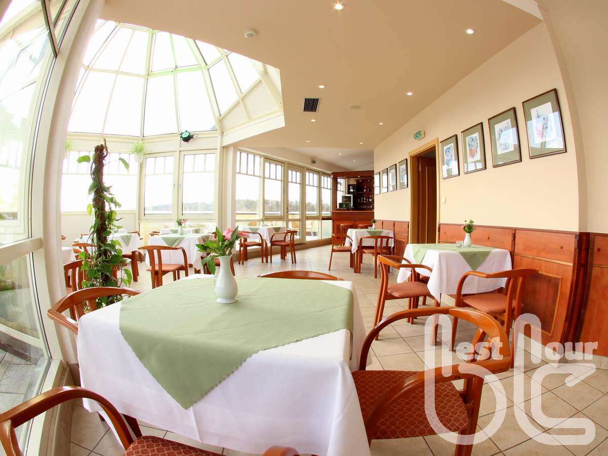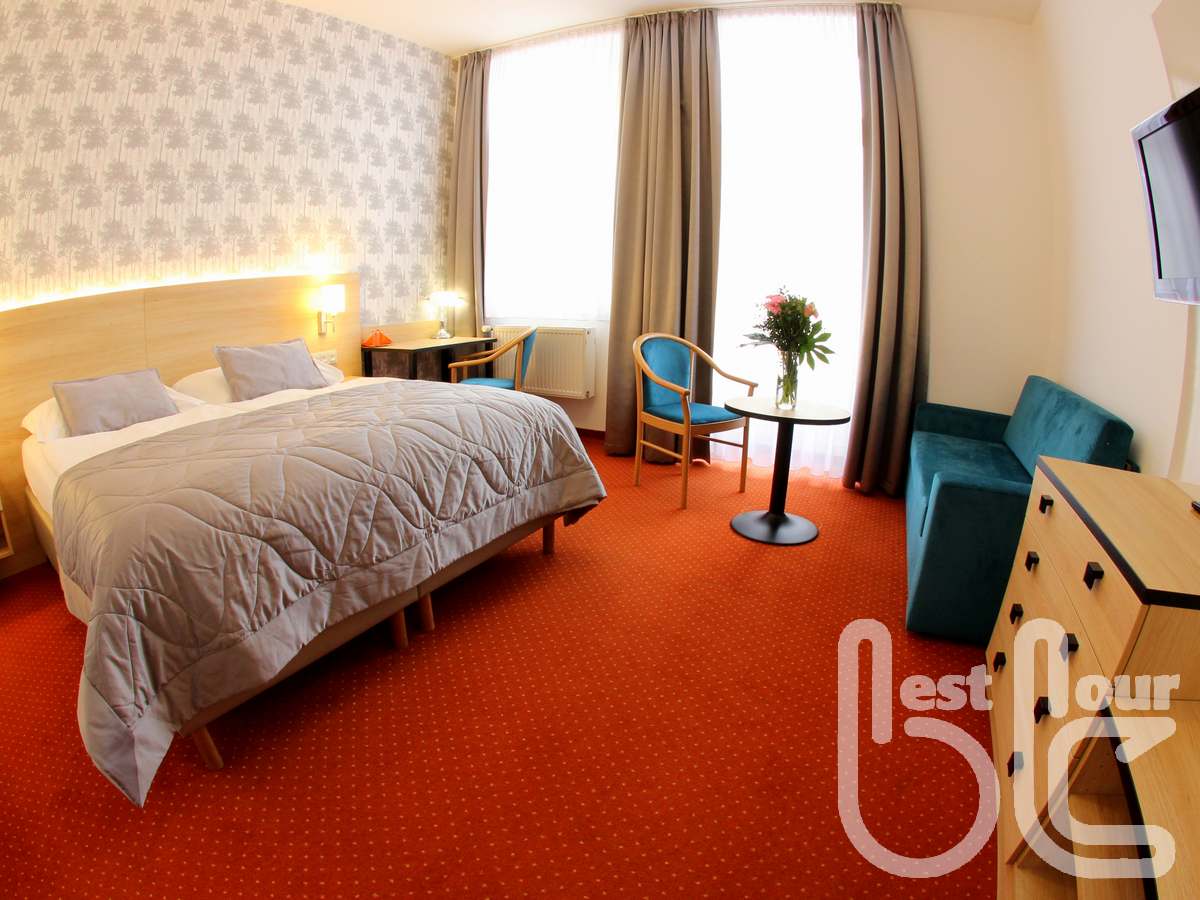 v příjemném hotelu 3* v blízkosti kolonády, jen 200 m od Zpívající fontány. Pokoje jsou útulně zařízeny - s koupelnou, WC, telefonem, TV, fénem, trezorem a Wi-Fi. Přímo v budově hotelu se nachází léčebné oddělení s rehabilitační péčí, wellness studio s kosmetikou s bioprodukty. K dispozici je i malý bazén s protiproudem (9x4m). Župan lze zapůjčit za poplatek za 30 Kč/den. Stravování – snídaně bufet, večeře 3 chody (výběr ze 4 hlavních jídel) + salátový bufet, v ceně je také 6x lehký oběd v poledne (polévka a poloviční porce hlavního jídla se střídá každý druhý den s polévkou a malým salátem + pečivo – oběd mimo den příjezdu). K dispozici klientům je také kavárna s vyhlídkou na kolonádu.